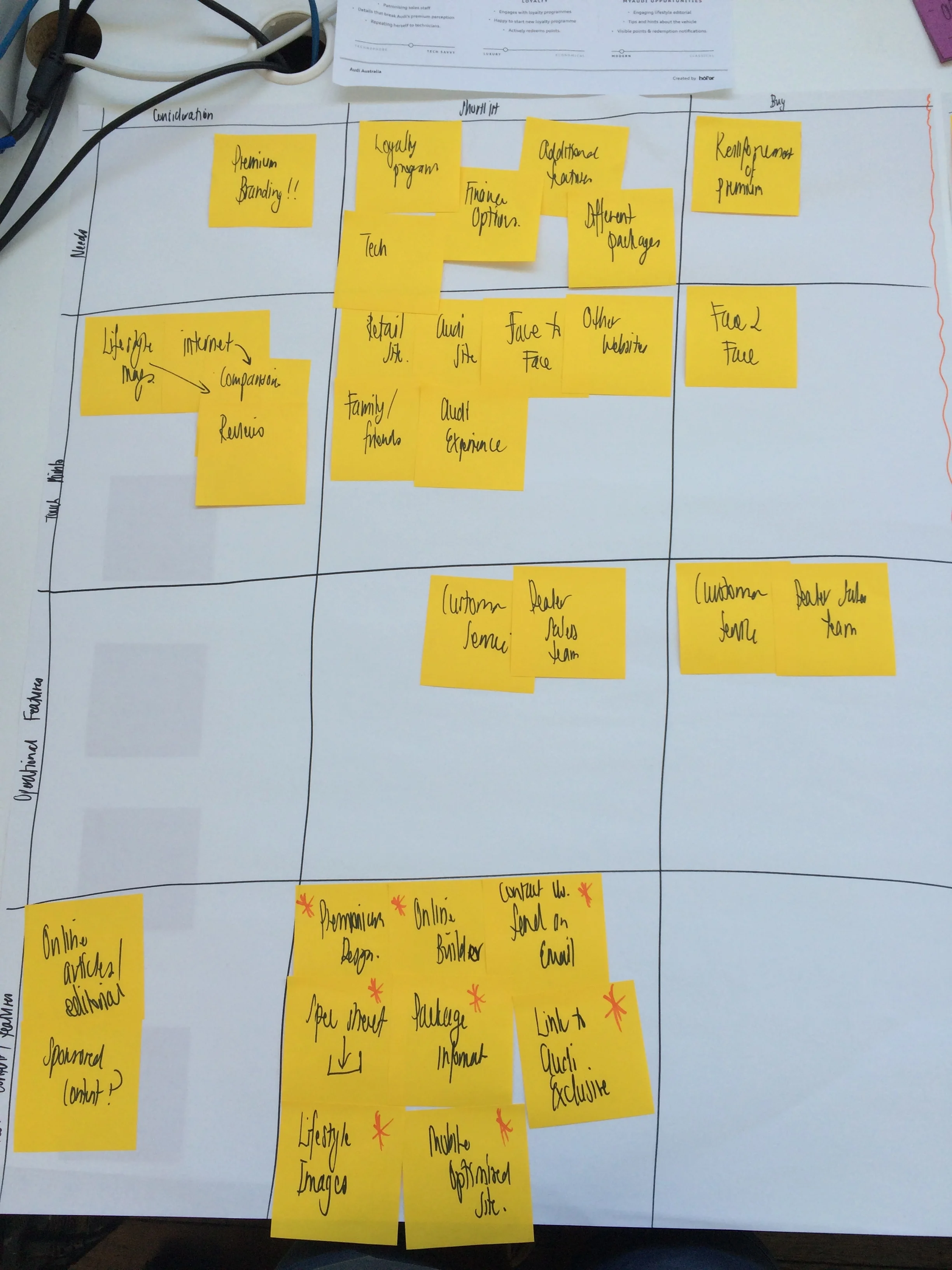 A stakeholder workshop was run to examine and refine the existing comprehensive Audi personas, under a retail lens and with a focus on price elastic customers.